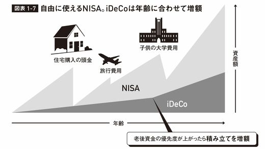 なぜなら、NISAで投資した資産はいつでも引き出せるので、家を買う時には住宅取得の頭金に、子供が生まれれば教育費にと自由に使うことが可能だからです。そういうライフイベントがないまま60歳を迎えた場合も、その資産を老後資金として使えるので、いずれにしても有用です。