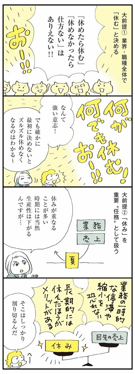 ライフ #ほしいのは「つかれない家族」 前の記事 次の記事 毎年「最低2週間の休暇」フランス人がとれるワケ 会社員はもちろん、農家でも医師でもパン屋でも…! 5分で読める 公開日時:2023/12/03 10:20 ハラユキ イラストレーター、コミックエッセイスト フォロー 1/11 PAGES 2/11 PAGES 3/11 PAGES 業界・働き方問わず、「休む」ための大前提 次ページが続きます 4/11 PAGES 5/11 PAGES 6/11 PAGES 7/11 PAGES 8/11 PAGES 9/11 PAGES 10/11 PAGES 11/11 PAGES