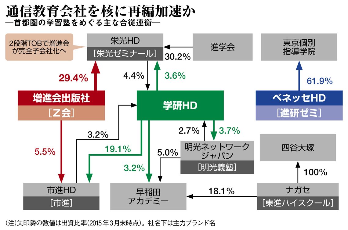 こうした合従連衡の動きは、今になって始まったものではない。2000年代半ば以降、通信教育・出版大手が地方の学習塾を傘下に収める動きが活発化している。