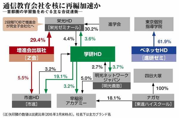通信教育「Z会」を運営する増進会出版社は5月19日、首都圏を中心に学習塾「栄光ゼミナール」を展開する栄光ホールディングス(HD)に対し、TOB(株式公開買い付け)を実施すると発表した。栄光HDはこれに賛同の意を表明して、TOBによる自己株取得も実施。2段階TOBで、増進会は栄光HDを完全子会社化する方針だ。