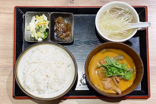 土日祝限定の朝メニュー(実は平日も食べられますが)「もつ煮定食」税込770円と、「朝の牛たんカレー」税込660円もご紹介します。