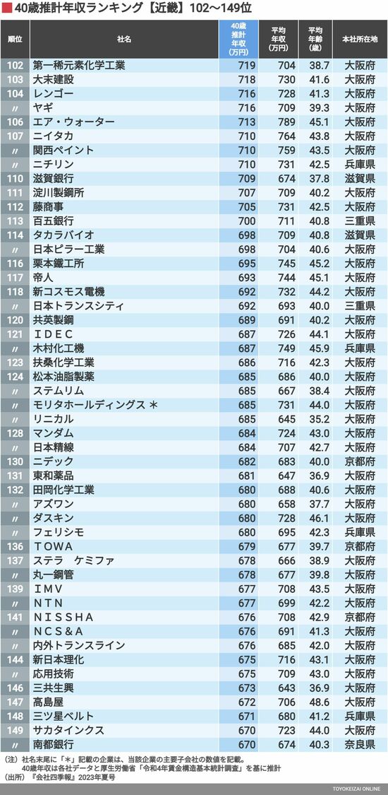 政治・経済・投資 #賃金・生涯給料ランキング 前の記事 次の記事 「40歳年収ランキング」近畿地方のトップ500社 大阪府の企業が多数!推計年収1000万円超は5社 2分で読める 公開日時:2023/12/10 05:30 東洋経済オンライン編集部 フォロー 1/11 PAGES 2/11 PAGES 3/11 PAGES 4/11 PAGES 102~149位 次ページが続きます 5/11 PAGES 6/11 PAGES 7/11 PAGES 8/11 PAGES 9/11 PAGES 10/11 PAGES 11/11 PAGES