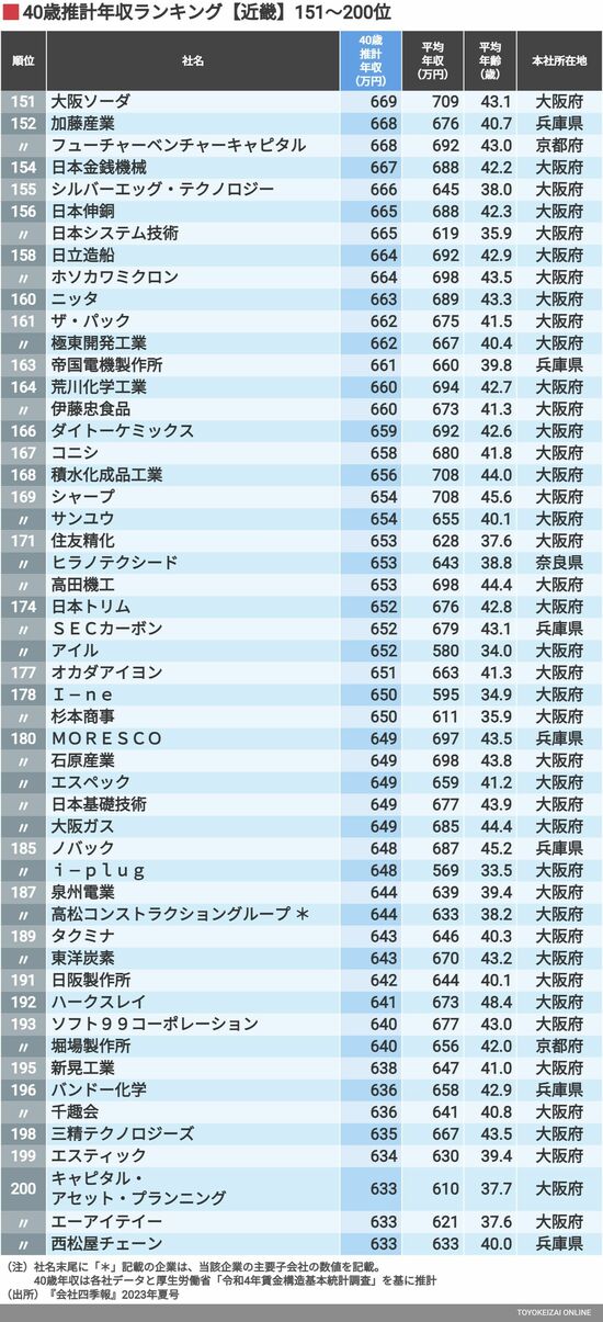 政治・経済・投資 #賃金・生涯給料ランキング 前の記事 次の記事 「40歳年収ランキング」近畿地方のトップ500社 大阪府の企業が多数!推計年収1000万円超は5社 2分で読める 公開日時:2023/12/10 05:30 東洋経済オンライン編集部 フォロー 1/11 PAGES 2/11 PAGES 3/11 PAGES 4/11 PAGES 5/11 PAGES 151~200位 次ページが続きます 6/11 PAGES 7/11 PAGES 8/11 PAGES 9/11 PAGES 10/11 PAGES 11/11 PAGES