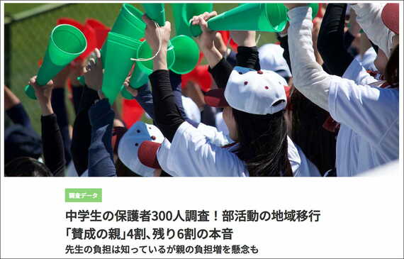 「中学生の保護者300人調査!部活動の地域移行『賛成の親』4割、残り6割の本音」