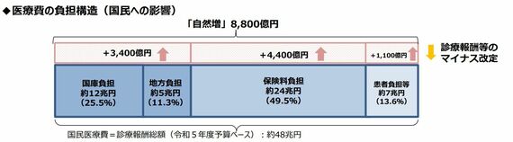 財政学を専門とする慶應義塾大学経済学部の土居丈朗教授は、「自然増の分だけ国民の負担が増える。その増額分を診療報酬のマイナス改定で抑えたいというのが、財政審の考え」と述べる。
