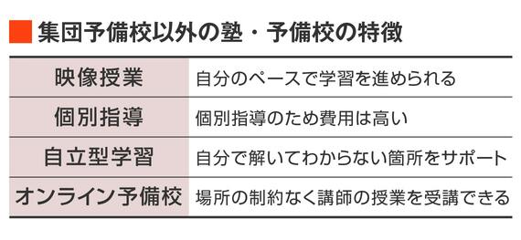 コロナ禍でオンライン学習の需要も増えました。自宅で映像授業を視聴する形式、映像授業予備校の在宅型、自立型予備校の在宅コーチング形式、自宅学習をサポートする形式、オンライン家庭教師などさまざまな方法があります。オンライン授業も、対面授業と遜色ない質を保持できるようになってきました。地方の生徒が都心部の講師の個別授業を受けたり、逆に地方大学を受験する生徒がその地域の講師の個別授業を受けるなど、居住地による情報格差などの影響を少なくすることが可能です。