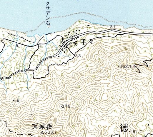 「てて」は鹿児島県徳之島町手々で、こちらは手がふたつだから珍しい。『角川』によれば「地名は天城岳連山に続く高頂など4岳の岳岳(てて)にちなむ」とある。