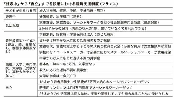 この若者がフランスにいれば、入試がないので入試にかかる費用はなく、大学の授業料は無料で入学金もない。施設出身者は寮に優先して入ることができ、生活費の奨学金は返済不要で学食も1食1ユーロ(日本円換算で155円程度※1)で食べられる。下図のような経済支援制度があるので、学生である限り生活の心配がないのだ。