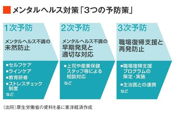 自身の体質を知るセルフケア、管理職が従業員の健康を管理するラインケアなどによって不調を未然に防止する「1次予防」、上司や産業保健スタッフとの相談体制を構築して不調を早期に発見して対応する「2次予防」、メンタルヘルス不調が悪化、再発しない仕組みをつくる「3次予防」だ。これらをしっかり機能させることで休職率を下げる、あるいは安定させることが可能になるという。