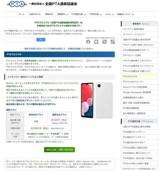 PTA運営支援、IT活用支援などのサービスを提供