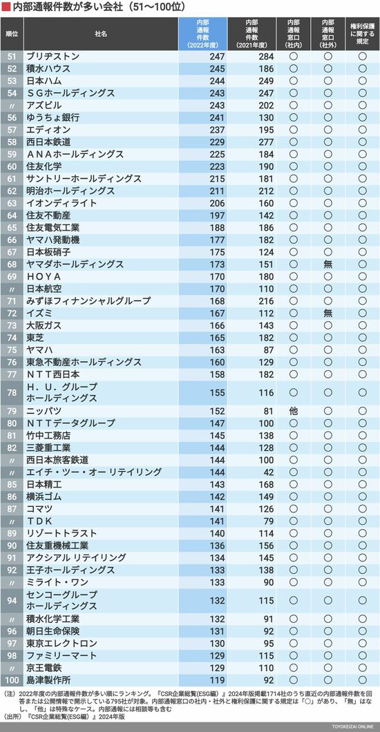 ビジネス #CSR企業総覧 前の記事 次の記事 「内部通報件数が多い企業ランキング」上位100社 ビッグモーターの不正請求で注目の内部通報制度 7分で読める 公開日時:2023/12/29 05:30 岸本 吉浩 東洋経済 記者 フォロー 1/5 PAGES 2/5 PAGES 3/5 PAGES 4/5 PAGES 5/5 PAGES