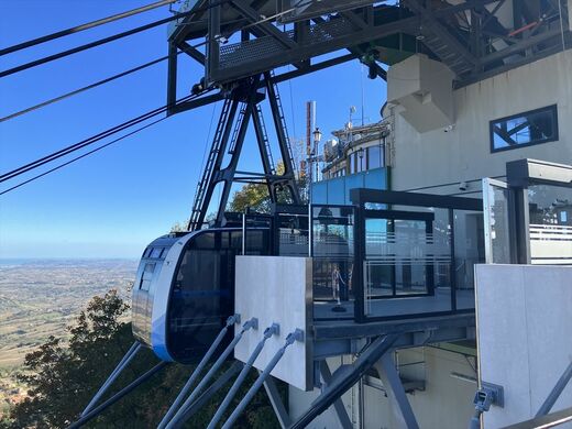 ちなみに現在、下界とティターノ山の山頂付近にあるサンマリノの街とを結ぶ公共交通機関はロープウェーがあるほか、イタリア鉄道(トレニタリア)のリミニ駅前からはサンマリノの街への定期路線バスが運行されており、1時間ほどで中心街まで行ける。