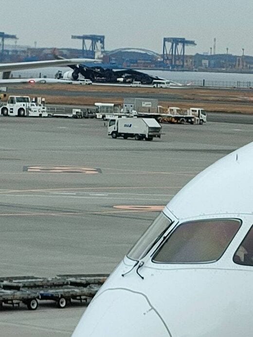 消火後のJAL機(写真上)。1月3日(編集部撮影)