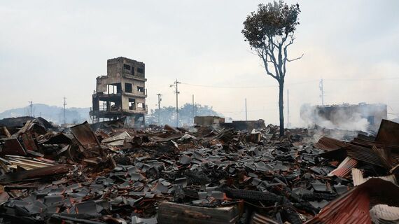 石川県輪島市の観光名所「朝市通り」周辺は地震直後の火災で焼け野原となった(写真:時事)