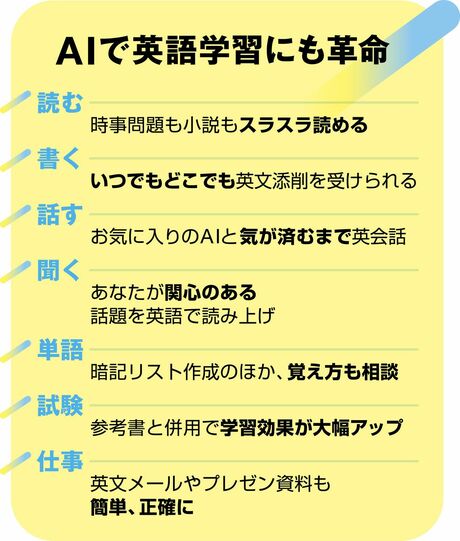 取材中、安河内哲也氏はパソコンやスマートフォン上でAI(人工知能)を活用した英語ツールを次々と起動させた。日本語のテキストは瞬時に英語テキストへ。AIは日本人でも聞き取りやすいテンポで英文を読み上げる。と思ったら、次の瞬間、日常会話を始めた。英会話教室のレッスンのようだ。