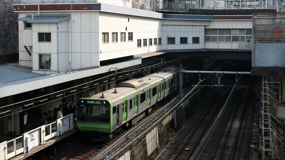 切り通しの中にある山手線目黒駅ホーム。所在地は目黒区ではなく品川区(筆者撮影)
