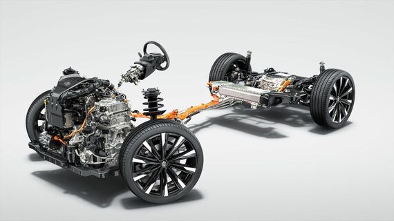 まず登場したHEV(ハイブリッド)モデルのパワートレインは、クロスオーバー「G」「X」と同様、2487cc4気筒ガソリンエンジンを使ったシリーズパラレルハイブリッド。エンジンで前輪を、モーターで後輪を駆動するE-Fourシステムだ。