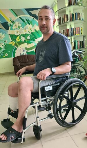 ルハンスク州クレミンナで対戦車地雷を踏んで左足を吹き飛ばされたヴラディスラさん(当時21歳)は医療従事者の助けを借りてリハビリに取り組んでいた。戦前は大学で法律を学ぶ学生だった。