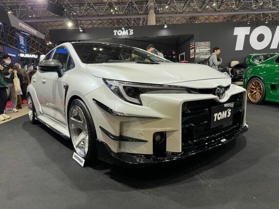 TOM'Sは、トヨタ車向けのアフターパーツを手がけるメーカーで、巨大なスポイラーを装着して空力効果を狙った「プリウス」や「GRヤリスTSS」などは食指が動く。