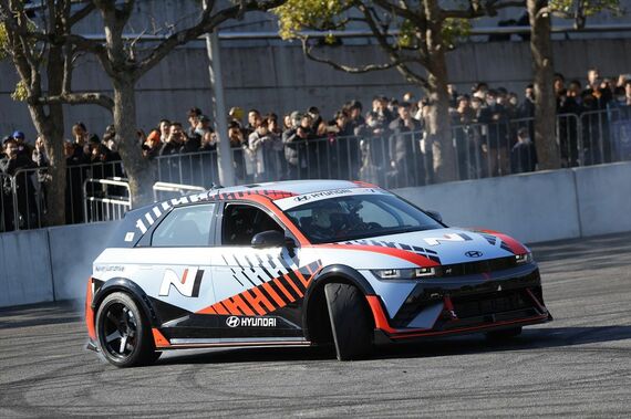韓国のヒョンデも、ドリフト走行が簡単に楽しめることをセリングポイントにしたハイパフォーマンスEV「IONIQ 5N」のデモランを行い、BEV(バッテリーEV)のポテンシャルを見せつけていた。2024年度年央の日本導入を前にドリフトをする姿を見せる、たいへんユニークな試みだ。