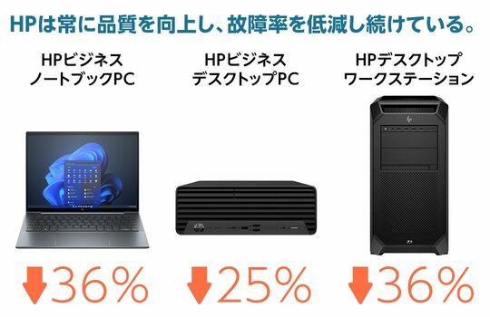 PCの品質を評価する軸の一つに年間故障率が挙げられるだろう。HPのビジネスPCは常に品質の向上を期して故障率の低減に取り組んできた。その結果、年間故障率は5年連続で低下傾向にあるという。