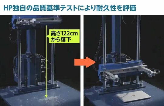 HPではかねてよりPCの品質を重視し、製品開発時に厳しい品質テストを実施している。ボディそのものや可動パーツの耐久性を検証・確認するテストで、その実施時間は1モデルあたり12万時間にも相当するという。