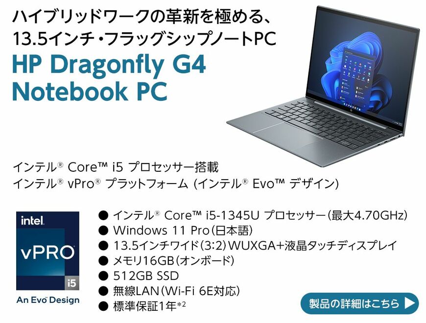 そんな高品質なビジネスPCの1台に「HP Dragonfly G4」がある。一般的にB5ノートと呼ばれるサイズで、重さは約1.0kg*1と軽量・コンパクトながら、マグネシウム合金製のボディは圧倒的な堅牢性を備え、もちろん米軍調達基準に準拠している。