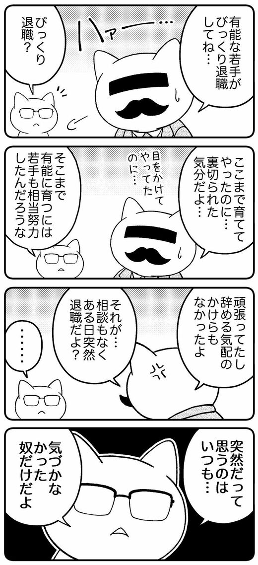 しかし、こういった考え方も退職につながった理由かもしれません。有能な若手ですから、おそらくは日ごろから自己研鑽に励み、精力的に働いてきたはずです。