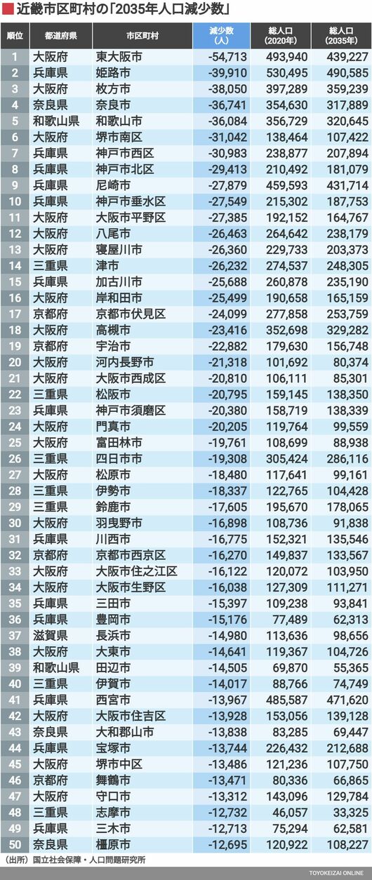 ライフ #住みよさランキング 前の記事 次の記事 5万人減も「2035年人口減少数」近畿市区町村274 257の市区町村では人口が減る見通し 5分で読める 公開日時:2024/01/28 05:01 東洋経済オンライン編集部 フォロー 1/7 PAGES 2/7 PAGES まずは1~50位 次ページが続きます 3/7 PAGES 4/7 PAGES 5/7 PAGES 6/7 PAGES 7/7 PAGES