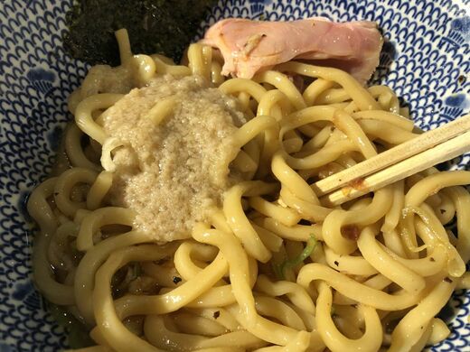 低温調理のチャーシューの仕上がりもよく、細タケノコやカツオ節、ネギなど食感に飽きの来ないトッピングもセンスが良い。学生向けの大味な一杯かと思いきや、しっかり作り上げられた油そばだ。