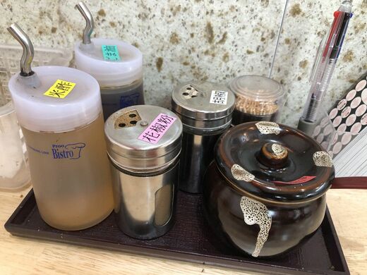 途中で「背脂」をコールすると背脂をかけてくれる。これがマイルドで旨い。卓上のお酢やラー油で味変を楽しむのも最高。