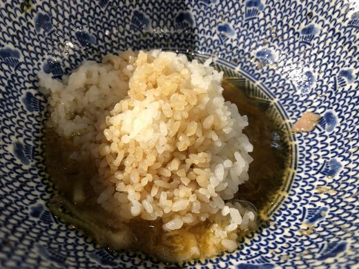 最後は追い飯で締める。ご飯の上に特製のカエシをかけて出してくれる。魚介に塩と醤油を合わせた酸味の効いたカエシでこれがまた美味しい。