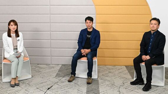 八子氏と諸岡氏が、村山千代アナウンサーの司会で「現場DX成功のための3カ条」について語った。