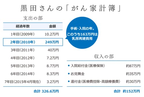 退院後も検査や通院の都度出費があり、かかった費用は今年4月の時点で総額326万円にものぼる。決して楽に捻出できる金額ではないだろう。がん保険に入っていなかったという黒田さんは、どのようにしてこの費用を捻出したのだろうか。