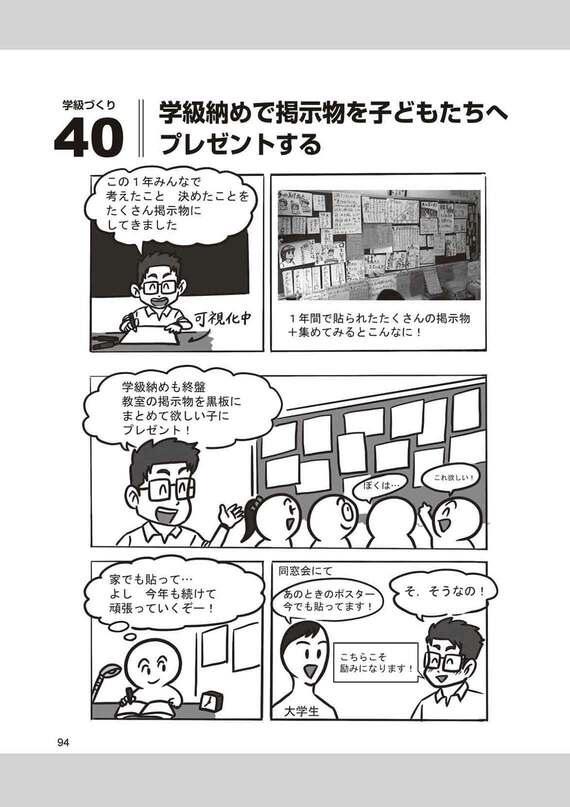 そこで意識しているのが「学級納め」です。「学級開き」はよく耳にしますが、次の学年にどう子どもたちを引き継ぐか、現担任の手を離れた後にどうつなげるかという「学級納め」(学級終い)も非常に大切だと考えます。