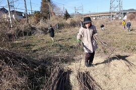小川町飯田にある楮畑で、やはり1月28日、楮の刈り取りが行われた。集まったのは、アメリカ人の版画家で和紙アーティスト、故リチャード・フレイビンさんの遺志を継ぐ人々と、小川町里山クラブ“You-You”(佐藤章会長)のメンバーら計15人。