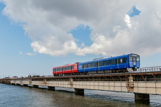 このローカル線の特徴は、蓄電池駆動電車EV-E801系「ACCUM」を使っていることだ。2017年から蓄電池、つまり電池を使った電車が走る非電化路線。ディーゼルカーとは違って、走っていても車内は実に静かで、電気自動車気分が味わえる。