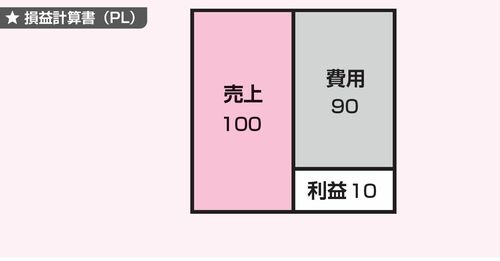 父:そう、スッキリしたでしょ? もう1つ、PL(損益計算書)をブロックパズルにすると、こんな風になる。売上と費用、利益の3つの要素だけ。数字は仮に入れてみた。