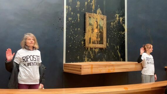 フランスの環境活動家らが1月28日、パリのルーブル美術館に展示されているレオナルド・ダ・ヴィンチの最高傑作『モナリザ』にカボチャのスープを投げつけ、「健康的で持続可能な食べ物」への権利を訴えた。