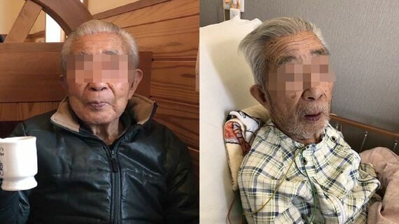 施設入居当日に撮影された写真では、ふっくらとした頬を緩ませ笑顔を見せていた健二さんだが、救急搬送後は10㎏ほど体重が落ち、口元にも力が入っていない(上の写真)。腰には床ずれもできていた。入居前は自分で歩いてトイレにも行ける状態だったが、現在は車いすでの生活を余儀なくされている。