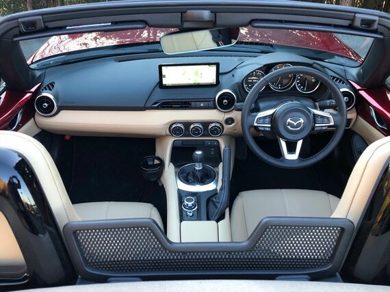 コネクティビティ関連では、マツダコネクトが最新仕様となり、8.8インチディスプレイをロードスター用に新たに設定した。当初はマツダ3用の移植も検討したというが、助手席のエアバッグ展開エリアとの関係など、さまざまな考慮の末、縁の少ないスマホのような形で新設となった。