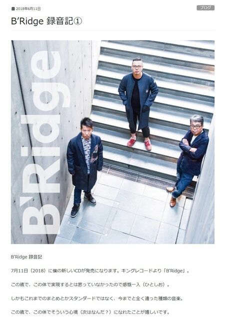 当時の状況が詳細に語られるのは2018年6月以降になる。自らが所属する新バンド・B'Ridgeによる同名CDの制作背景を伝える流れで、およそ1年の体調を少しずつ明らかにしていった。