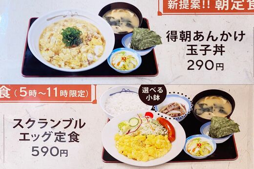 カフェモーニングではおなじみのスクランブルエッグですが、調理工程に時間を要する溶き卵を使った料理は、スピード勝負の牛丼チェーンの朝メニューでは、初登場となります。