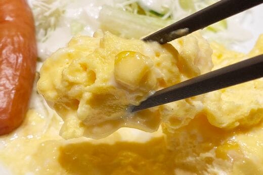 松屋のスクランブルエッグはコーン入りでしっとり食感