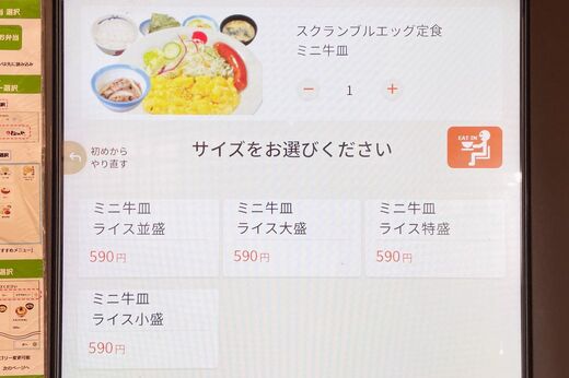 選べる小鉢は4種類あるのですが、単品価格で「ミニ牛皿」は税込170円、「納豆」税込100円、「国産とろろ」税込170円、「冷奴」税込100円とばらつきがあり、ついつい定価が高くボリュームもある「ミニ牛皿」を選んでしまいます。