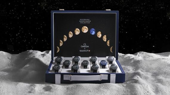 2024年2月12日、スイスの高級腕時計ブランドであるオメガは、希少なモデルをまとめた「ムーンスウォッチ ムーンシャイン ゴールド スーツケース」11点をサザビーズでのオークションに出品した。オークションハウスが査定した落札予想価格は5000~1万スイスフラン(約85万~170万円、1スイスフラン=170円で換算)だが、2月13日時点ですでに1万スイスフラン(約170万円)の入札があり、最終的な落札価格はさらに上昇していくものと思われる。