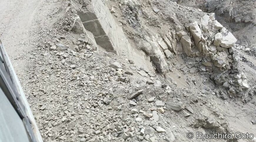 一台がなんとか通れるほどの車幅にもかかわらず、道は左右にうねる。さらに、崖下に木々はなく、落ちたらそのまま数百メートル下にある谷底にズドーンだ。