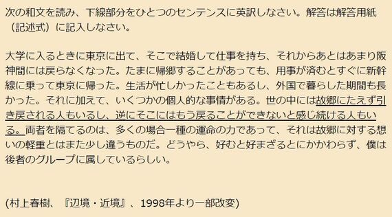 実はこの問題、下線部分自体を直訳で英語に直すのは、そこまで難しいことではありません。下線部分の日本語を見てもらえればわかると思うのですが、語彙的にはあまり難しい表現がないからです。「この単語、どうやって英語に直せばいいんだ?」と思うようなものはほとんどないと言えます。