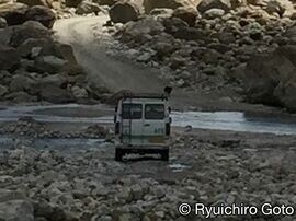 しばらく道を進むと急に車のスピードが落ち、止まった。運転手が助手席の男と何やら話している。
