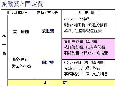 コストは、変動費と固定費に分かれます。つまり、売上高や販売数の増減によって変動する変動費にコストを集中し、固定費を少なくすることでコスト減を図ります。